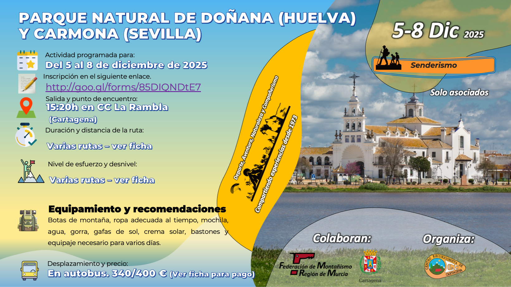 Si tienes intención de hacer este viaje, dínoslo inscribiéndote. Pincha uno de los siguientes enlaces, rellena el formulario con tus datos y selecciona la actividad correspondiente a 5 AL 8 DICIEMBRE 2025. SENDERISMO. PARQUE NATURAL DE DOÑANA.