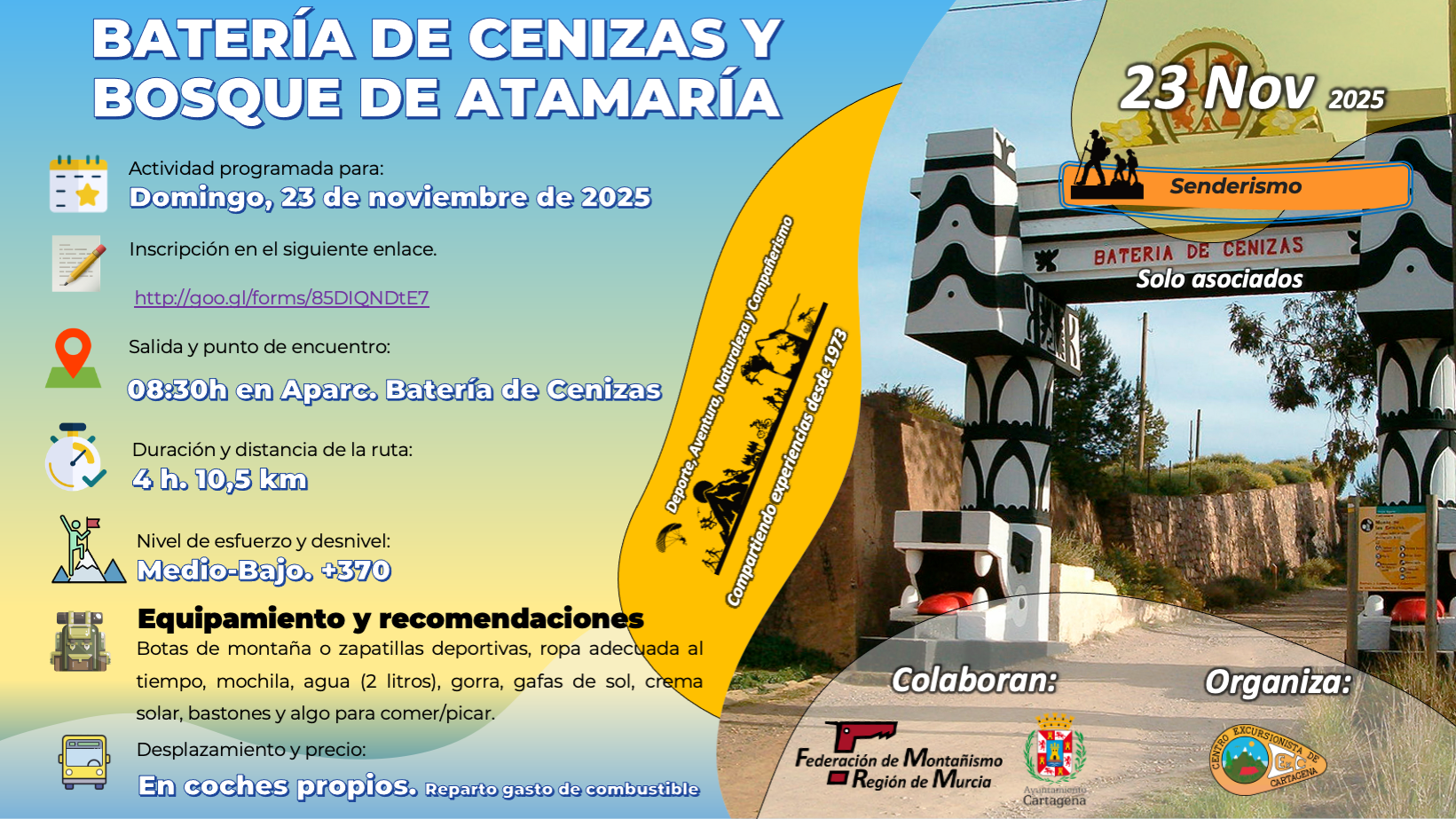 - Hora de salida: 8:30 h desde el “Aparcamiento Batería de las Cenizas”.