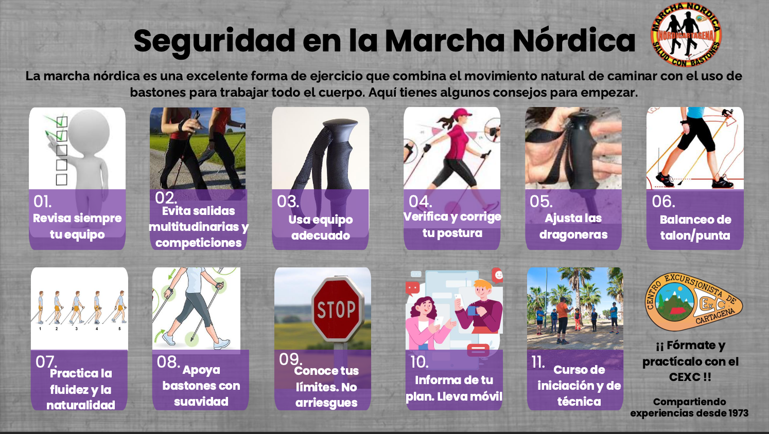 En el Centro Excursionista de Cartagena queremos que disfrutes de esta disciplina con confianza y bienestar, por eso compartimos nuestras 11 claves para practicar marcha nórdica de forma segura.